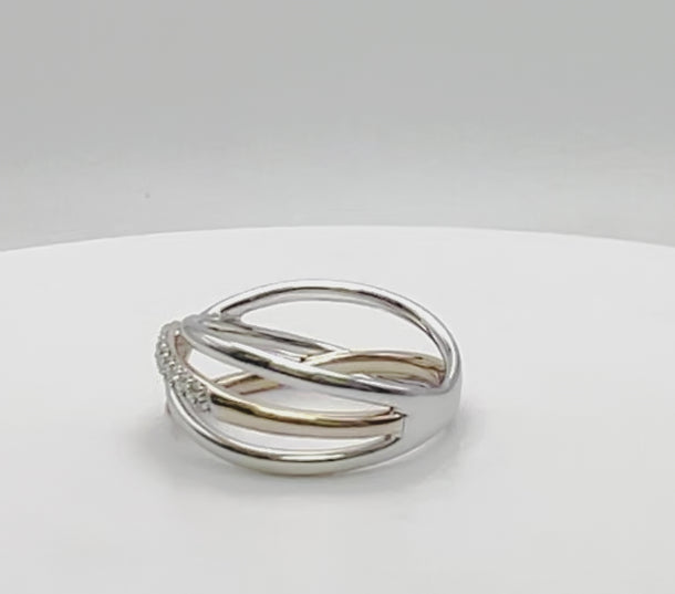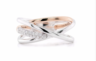 9ct rose gold and 9ct white gold crossover design diamond ring.